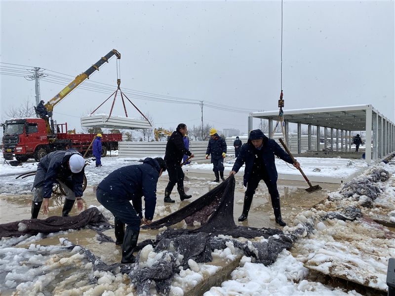 2月7日(農(nóng)歷正月初七),冬雪紛紛、寒風(fēng)瑟瑟,惡劣的天氣并未阻擋隔離點(diǎn)項(xiàng)目各參建單位的激情和干勁。中午12時(shí)40許,監(jiān)理單位在現(xiàn)場(chǎng)開展巡查,鰲峰建設(shè)在項(xiàng)目部組織施工會(huì)商工作。下午,國資集團(tuán)黨員突擊隊(duì)、志愿服務(wù)隊(duì)主動(dòng)請(qǐng)“戰(zhàn)”,步履匆匆赴現(xiàn)場(chǎng)鏟雪除冰。副區(qū)長(zhǎng)王劍赴現(xiàn)場(chǎng)督查指導(dǎo)工作并對(duì)項(xiàng)目進(jìn)度表示肯定。