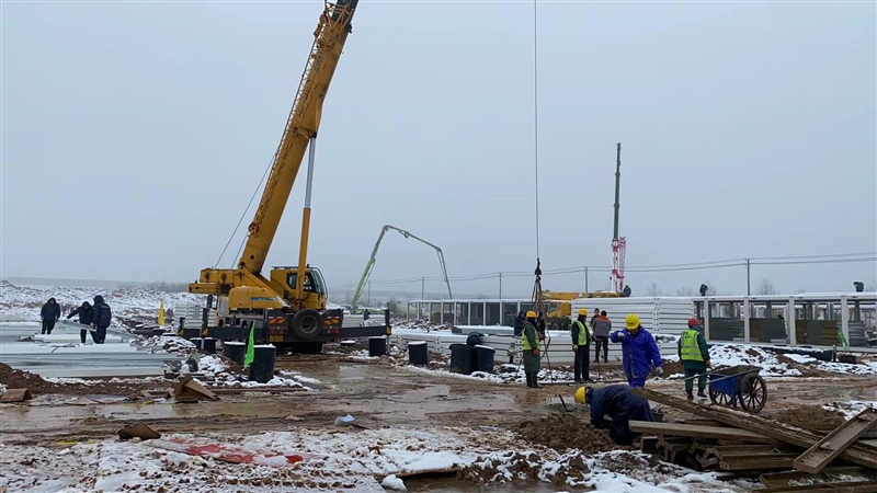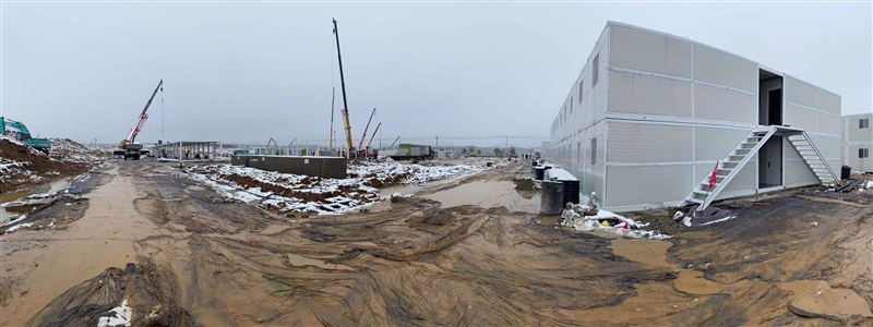 2月8日,新年的第一場(chǎng)暴雪終于遏制住怒吼,各搶建班組全力加速推進(jìn)準(zhǔn)備區(qū)折疊房和隔離區(qū)打包房的安裝,室內(nèi)淋浴房、水電及室外電力電纜井砌筑等多個(gè)作業(yè)面施工全面展開,現(xiàn)場(chǎng)掀起節(jié)后施工新一輪大干熱潮。