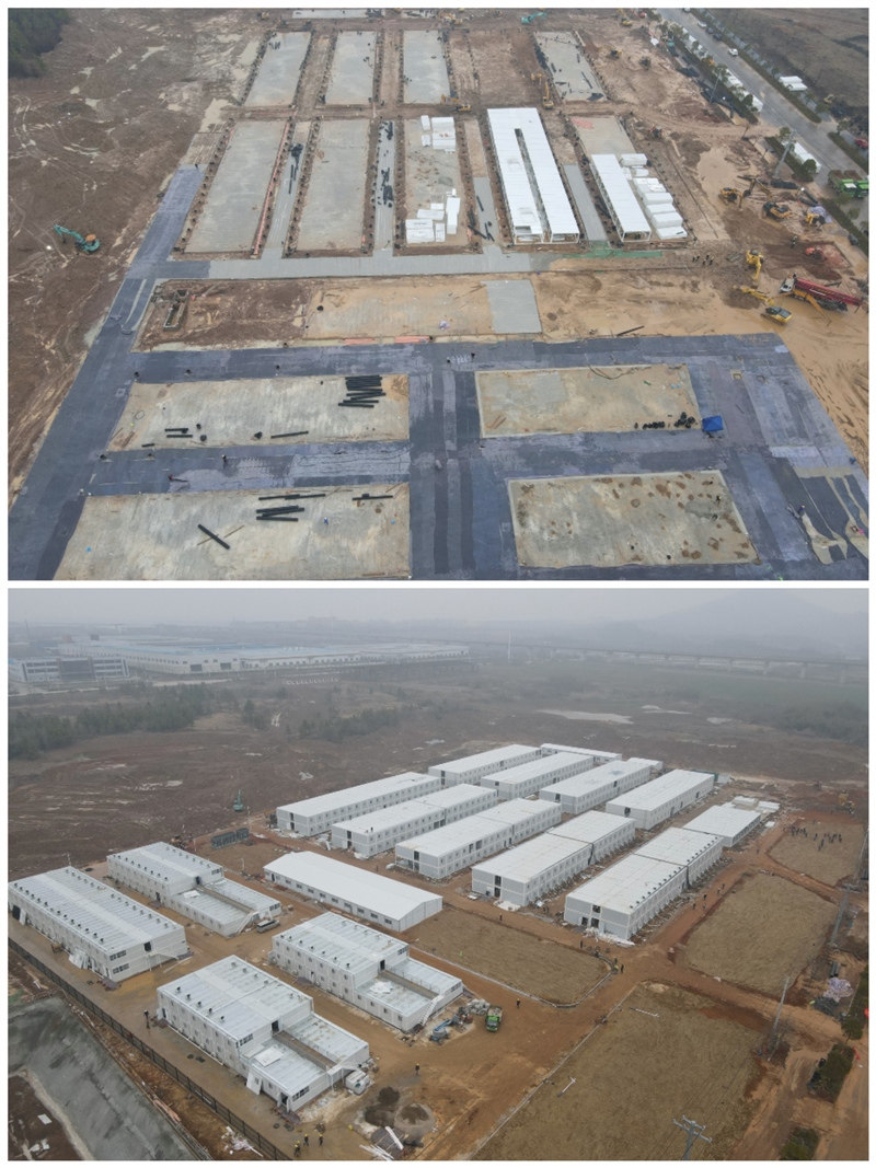 自1月21日宣州區(qū)疫情防控指揮部緊急部署由區(qū)國資集團承建宣州區(qū)疫情防控臨時隔離點項目始,集團即刻投入到緊張有序的搶建工作中。冬季施工難度相當大,項目更是遭遇持續(xù)降雨、二次大雪和連續(xù)降溫,氣候條件十分不利。然而國資集團不畏困難,不失時機,抓住一切機會搶工程,不論白天、黑夜、刮風(fēng)還是下雨,始終緊抓建設(shè)不放松,克服持續(xù)陰雨天氣,大干6個晝夜,突擊144小時連續(xù)作業(yè),完成25000平方米混凝土澆筑。更是在春節(jié)期間不停工,不斷檔,頂著暴風(fēng)雪、克服春運帶來的采購、人工、交通等一切不利因素,在元宵節(jié)前完成準備區(qū)188套、隔離區(qū)744套打包房吊裝工作。