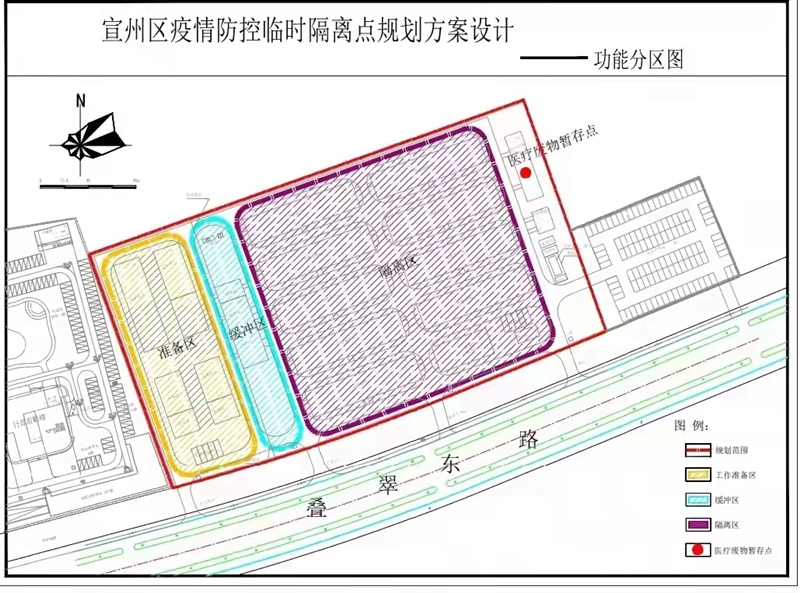 歷時一個月,臨時隔離點項目進(jìn)入最后掃尾階段,項目按照《安徽省集中隔離點場所設(shè)置管理工作規(guī)范(試行)》中“三區(qū)一點”要求進(jìn)行布置,總建筑面積20614平方米,占地面積31931平方米,分為工作準(zhǔn)備區(qū)、緩沖區(qū)、隔離區(qū)和醫(yī)療廢物暫存點。工作準(zhǔn)備區(qū)配有后勤及醫(yī)護(hù)人員宿舍、辦公區(qū)、庫房、洗衣房、配餐間;隔離區(qū)配有健康驛站、服務(wù)中心和消洗準(zhǔn)備間。隔離房間共計648套,每套均配有空調(diào)、熱水器、淋浴房等基本生活設(shè)施,隔離點網(wǎng)絡(luò)已經(jīng)全面覆蓋,能全面滿足特殊時期生活需求。